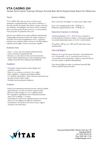 VTA CASİNG 200, tüm taze beton ve beton yüzey Beton yüzeyinin emiciliğine ve ortam ısısına bağlı olarak;